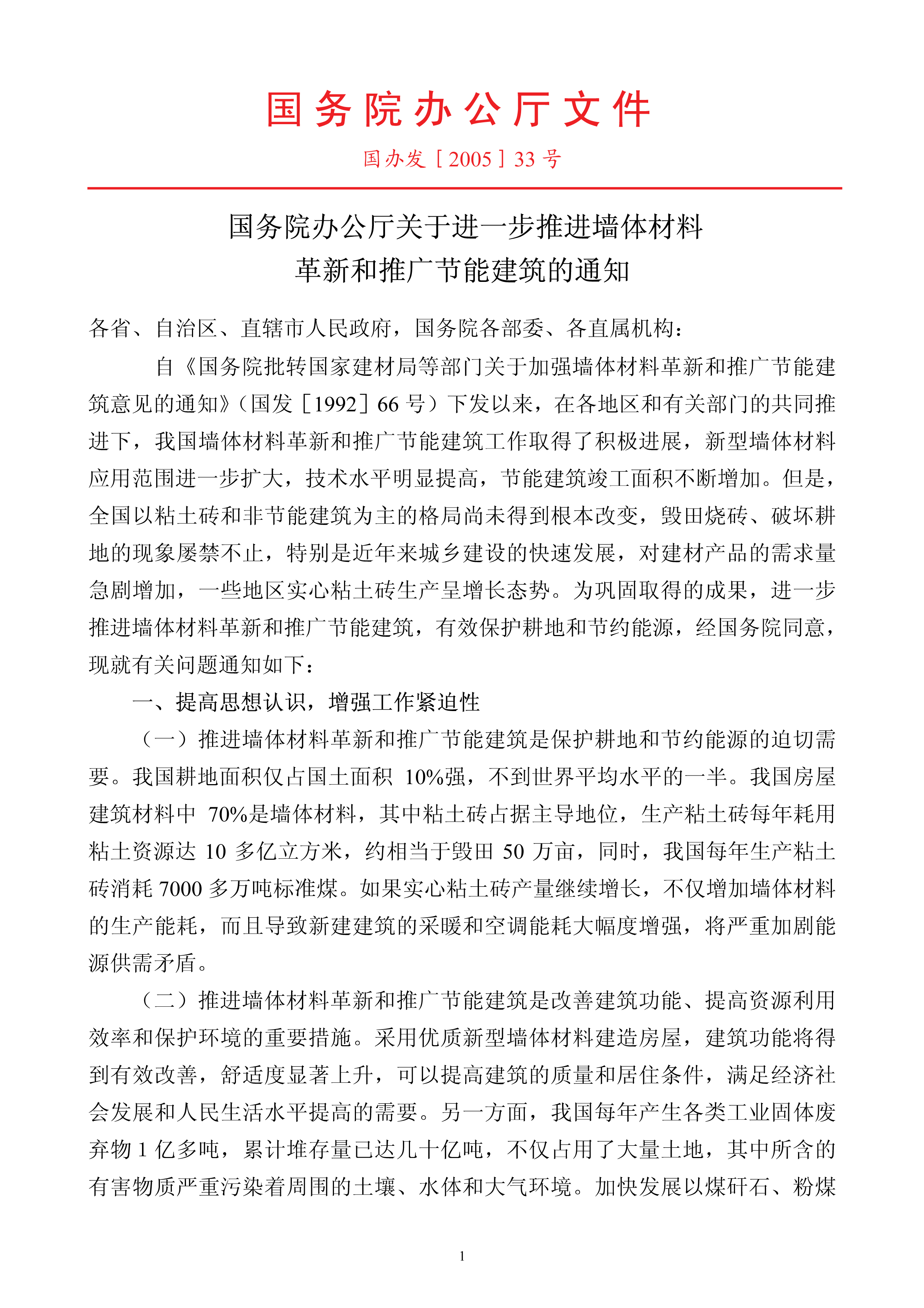 國(guó)務(wù)院辦公廳關(guān)于進(jìn)一步推進(jìn)墻體材料革新和推廣節(jié)能建筑的通知